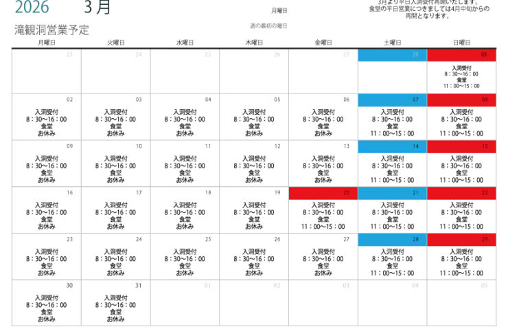 3月営業予定